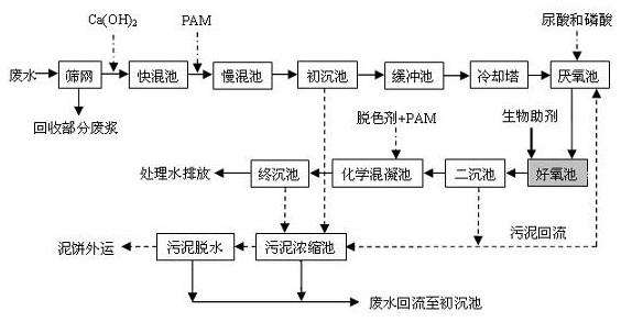 所以說造紙廠廢水處理一般都要經過生化后,在利用相關污水處理藥劑來處理,一般會用到聚合氯化鋁,聚丙烯酰胺,聚合氯化鋁鐵,硫酸鐵等;這樣會起到事半功倍的效果;造紙廠廢水處理工藝如下圖: